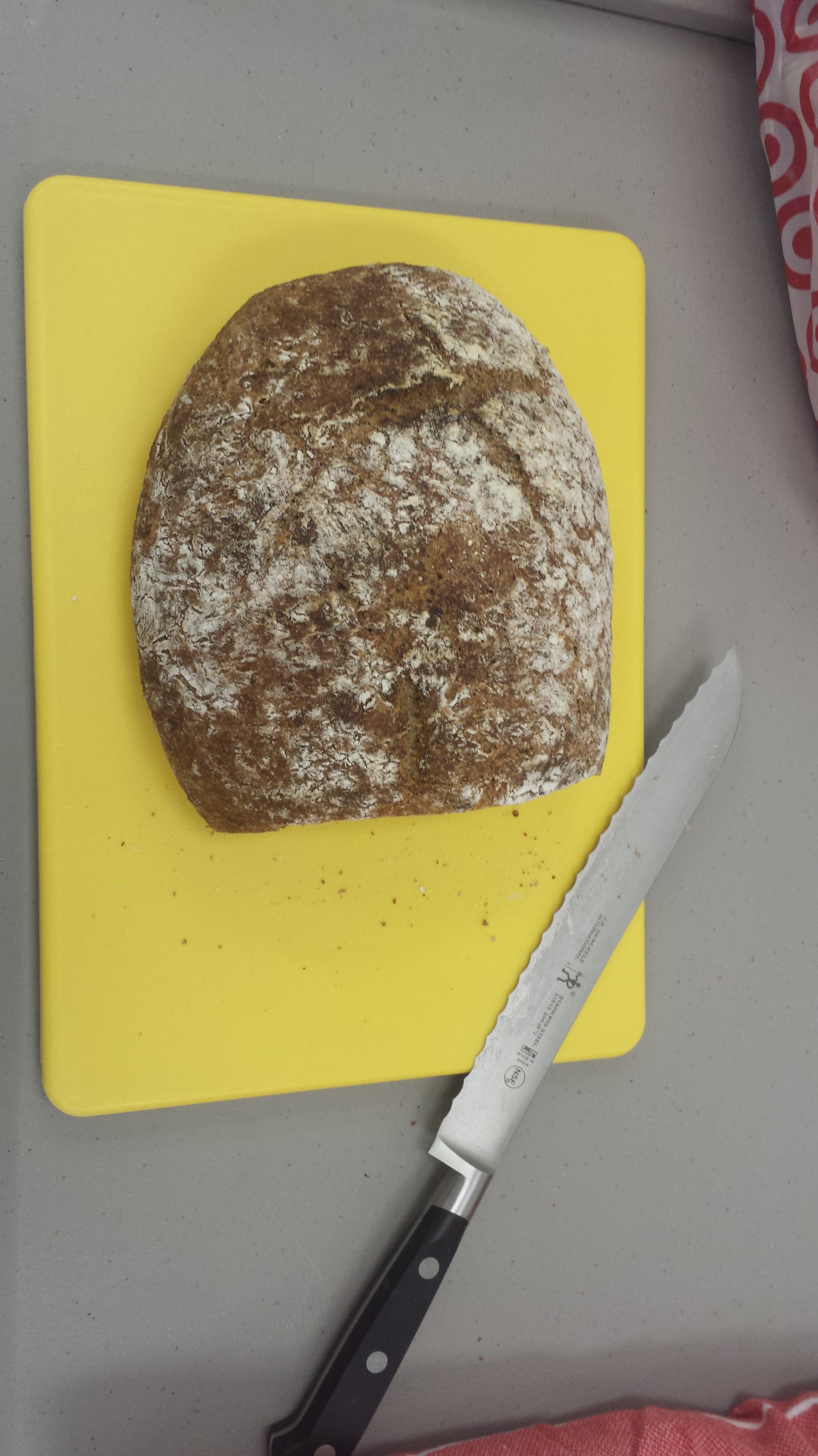 Remove the bread from the dutch oven and let it rest until it has cooled. This is a very important step; the bread continues to bake while resting. If you don’t let it rest, the texture will be wrong.