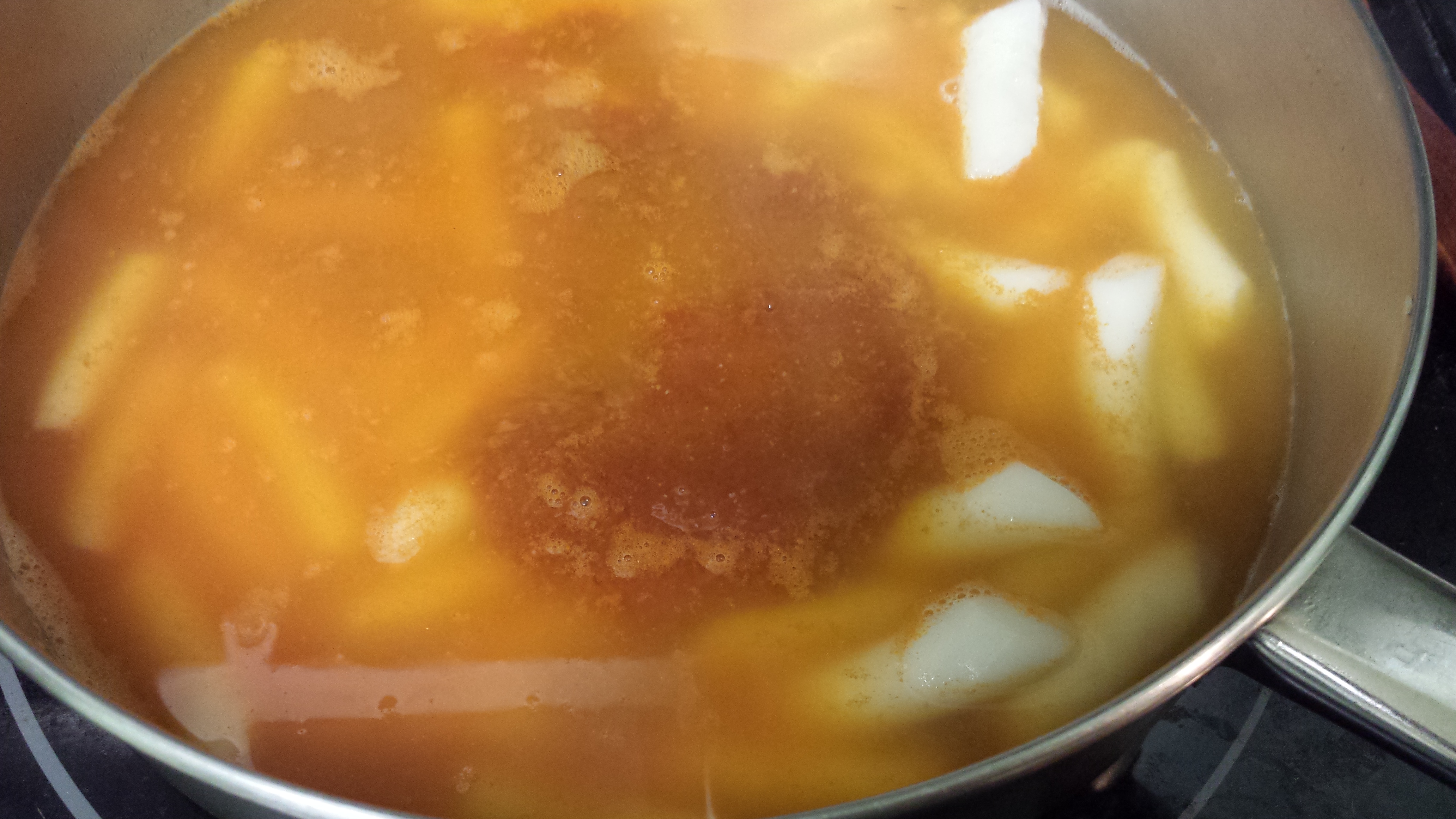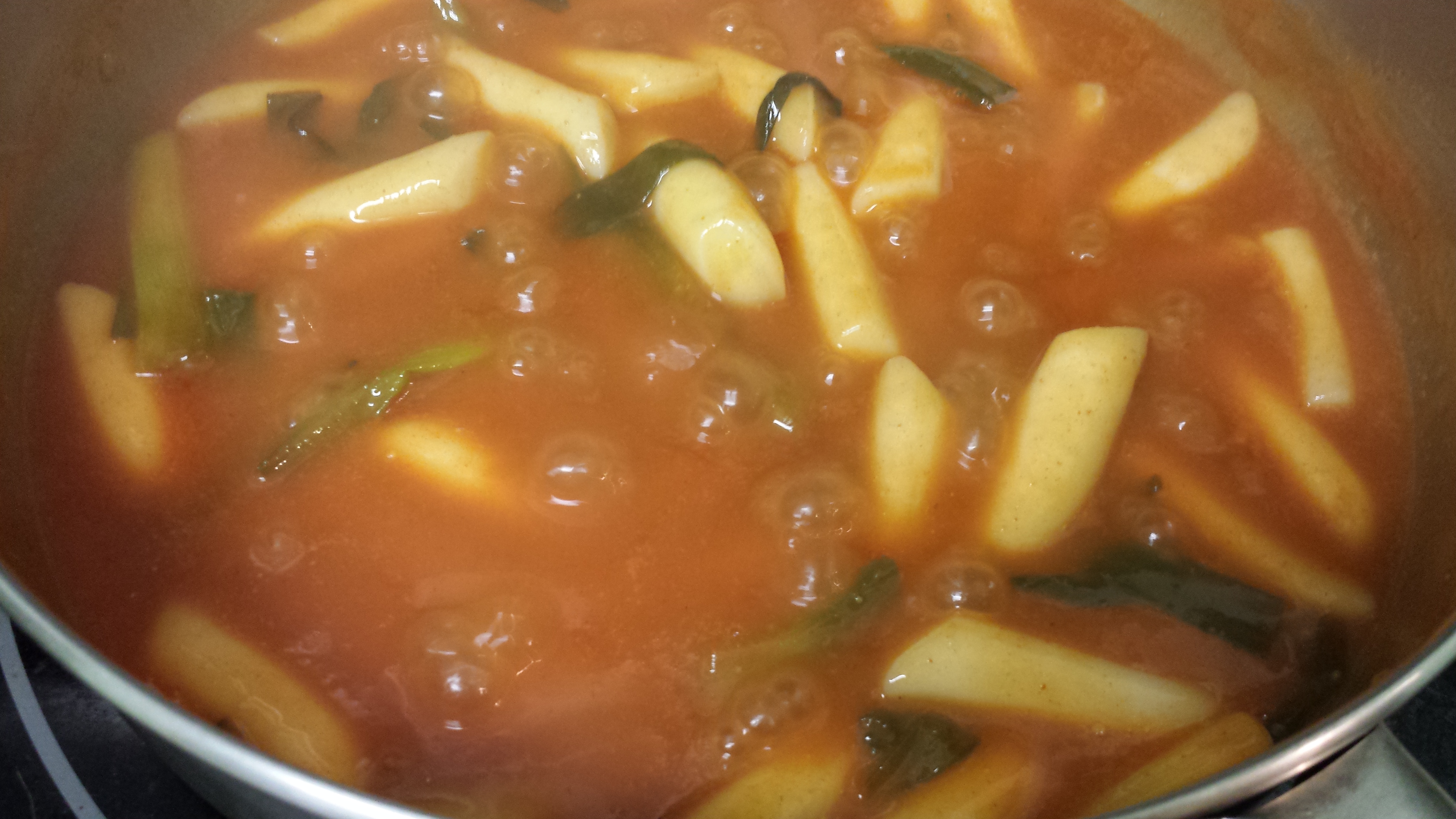 Boil for 10-15 minutes, continually stirring, until the rice cake becomes soft and the sauce thickens.