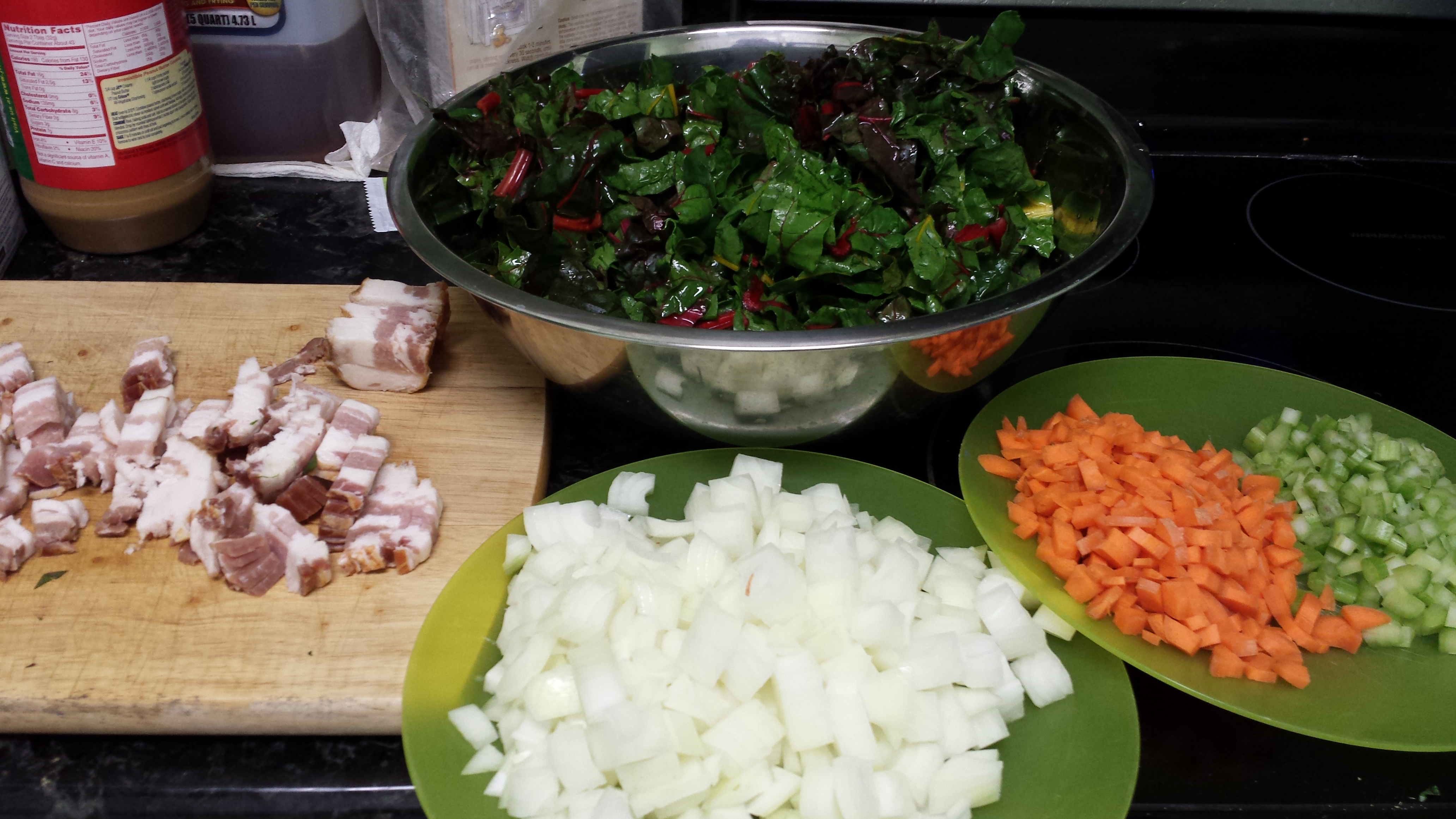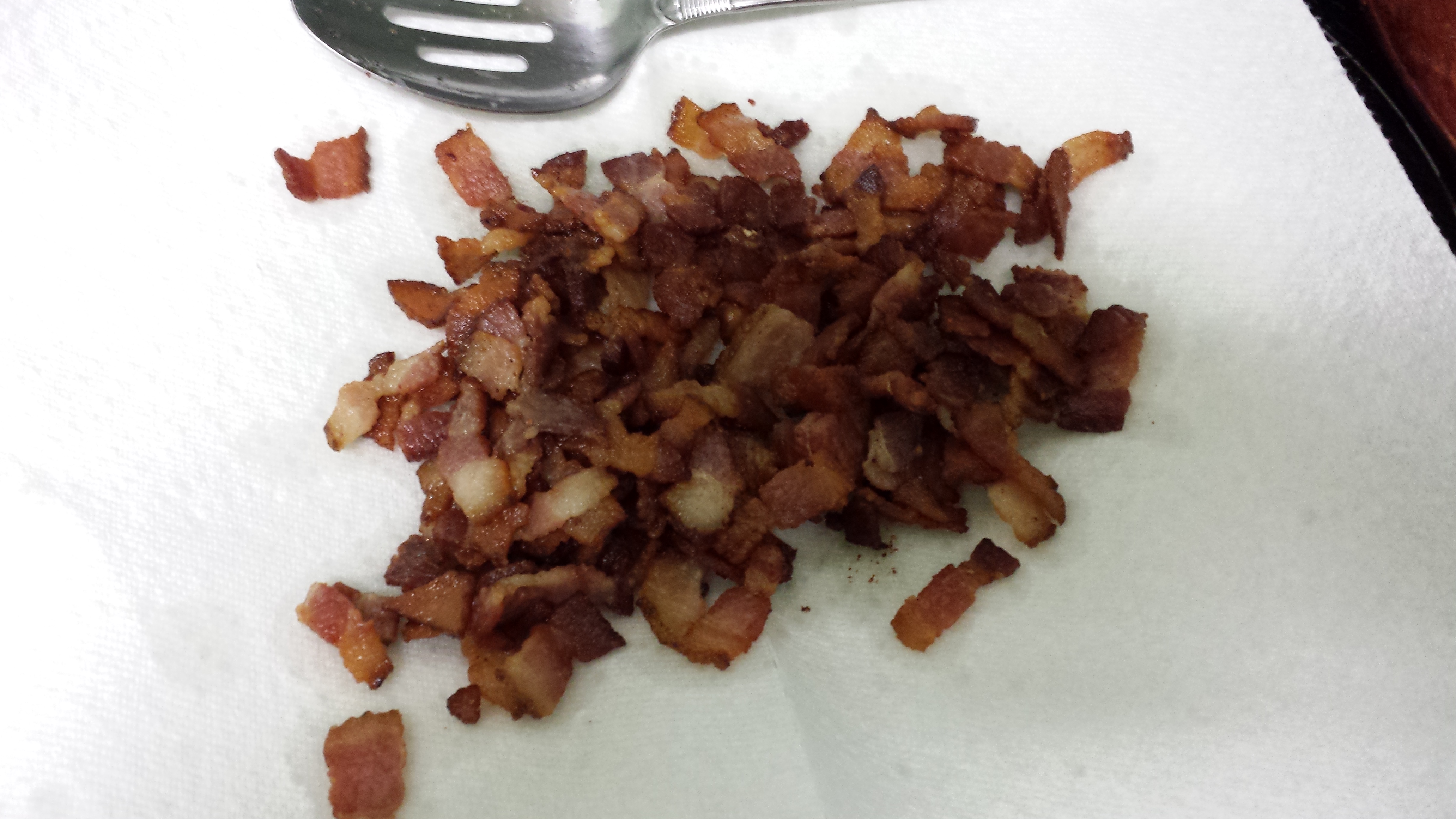 - Deb uses pancetta for this recipe, but I’ve found that thick cut bacon also works really well. As bacon is really fatty, I always drain the excess fat after crisping the bacon before cooking the vegetables.