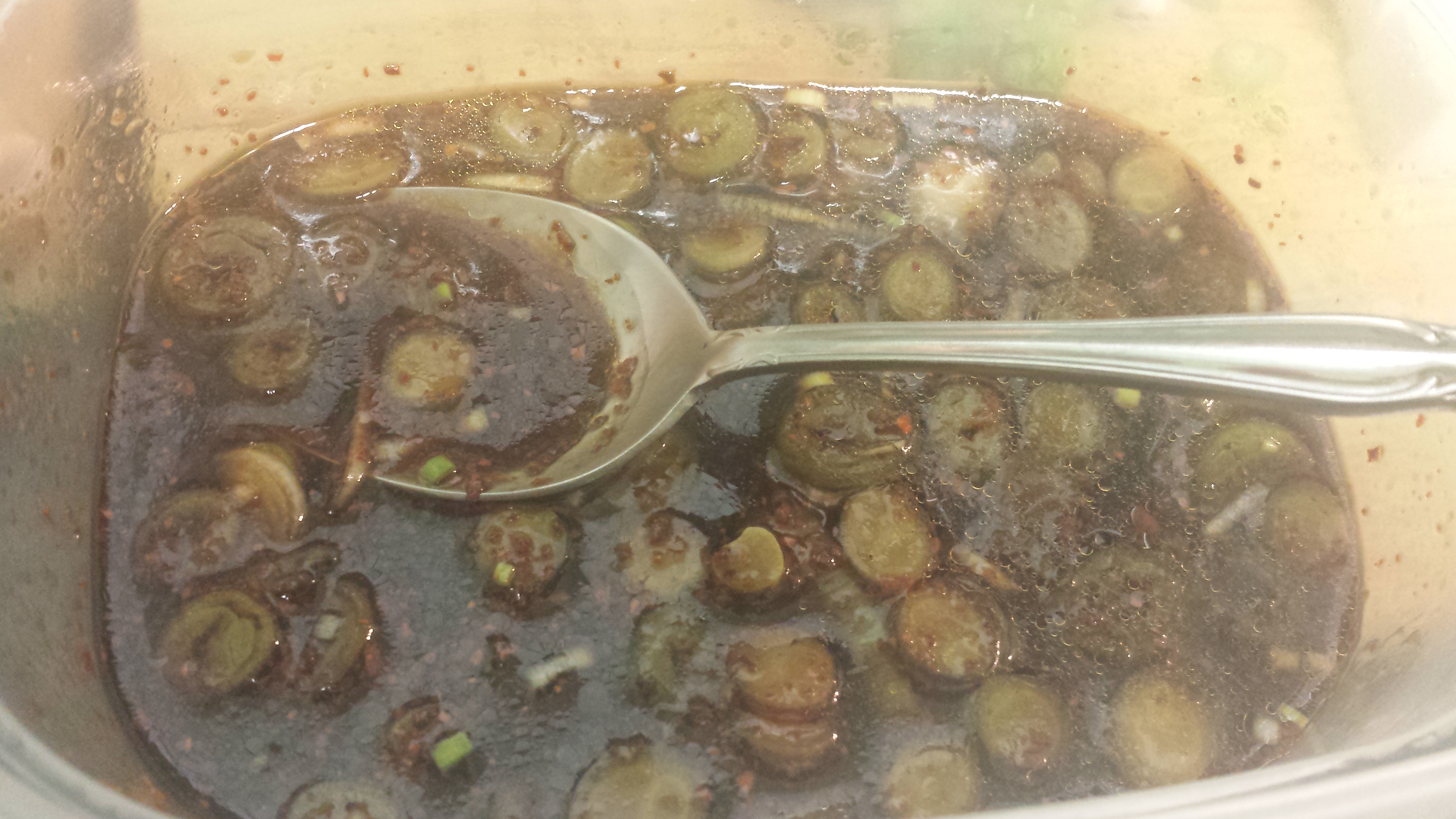 Start by mixing the sauce. Add the scallions, chili paste, soy sauce, rice vinegar, sugar, and sesame oil to a small boil. Stir until the sugar dissolves.