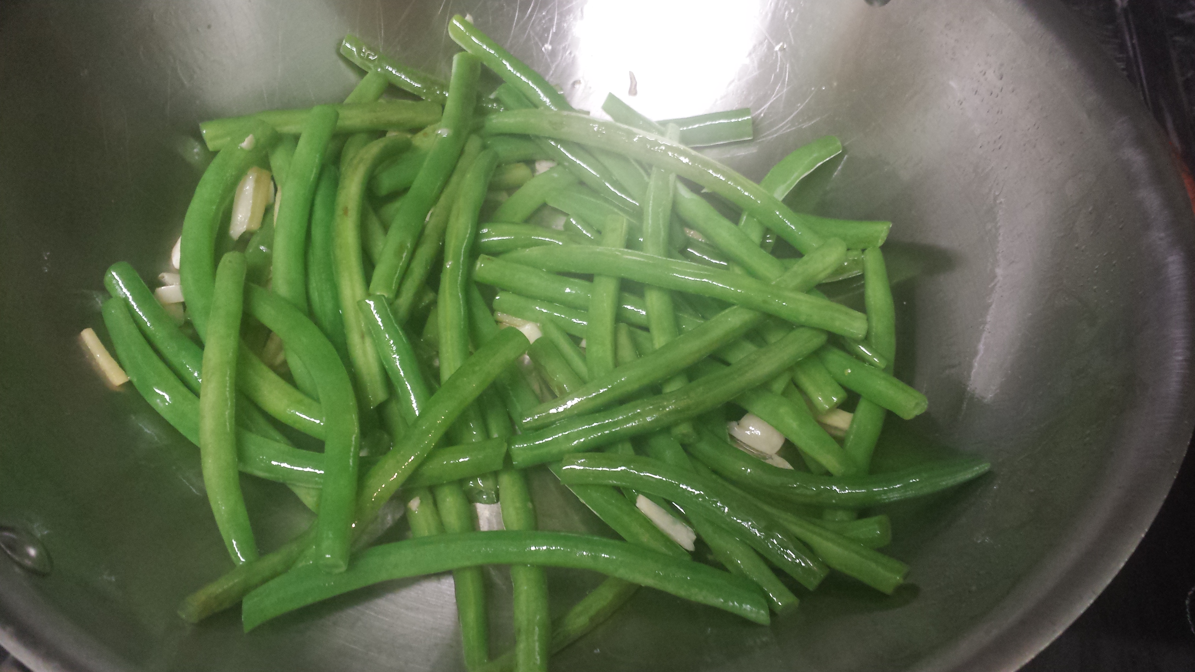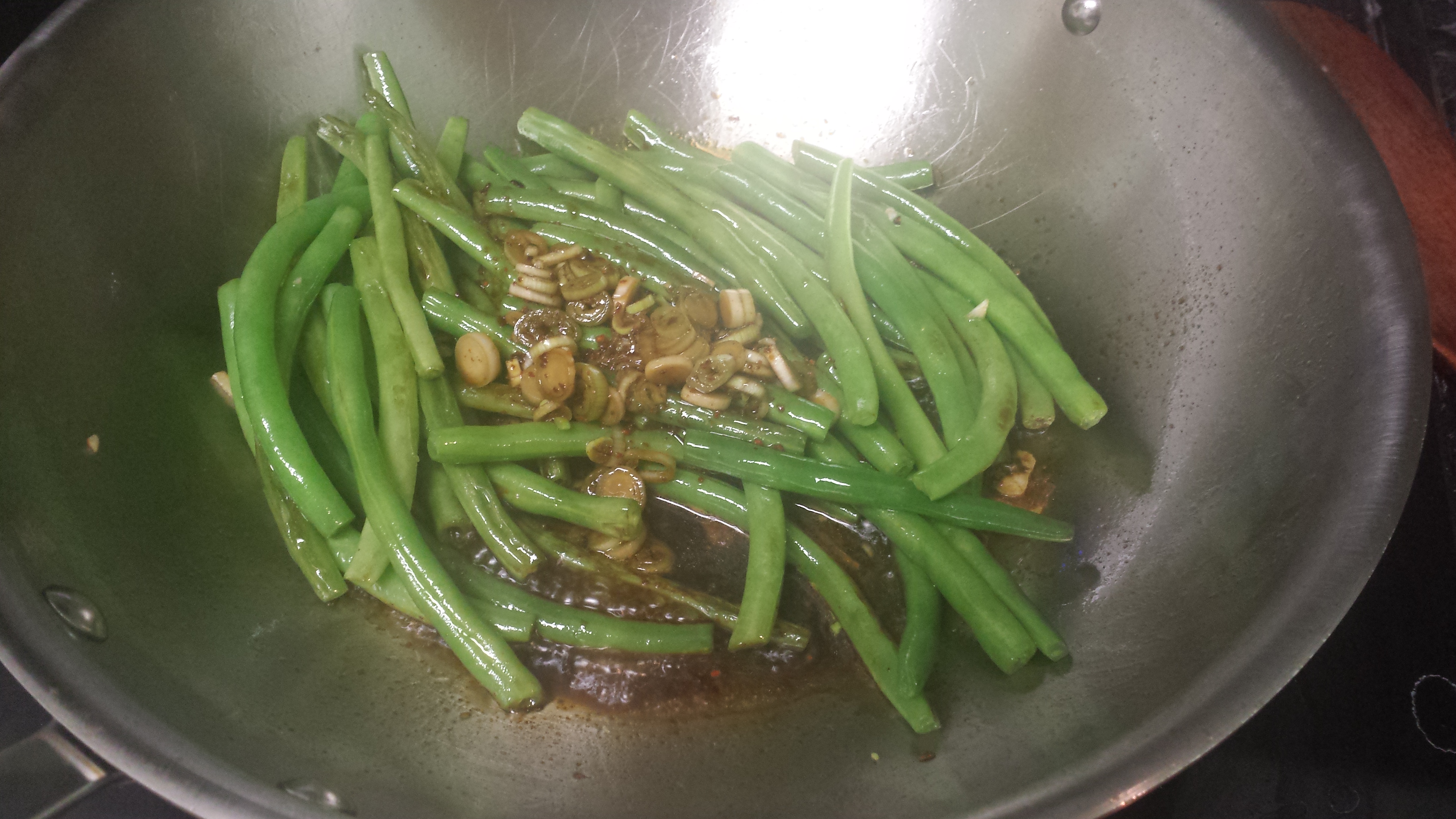 Next, add the garlic and ginger. Continue to stir fry at high heat for another 5 minutes. Your beans should be almost fully cooked by the end of this stage. It might take a few trials before you get the consistency just the way you like it.
